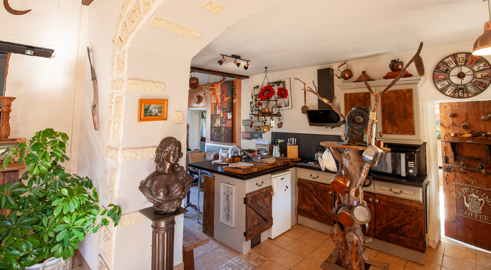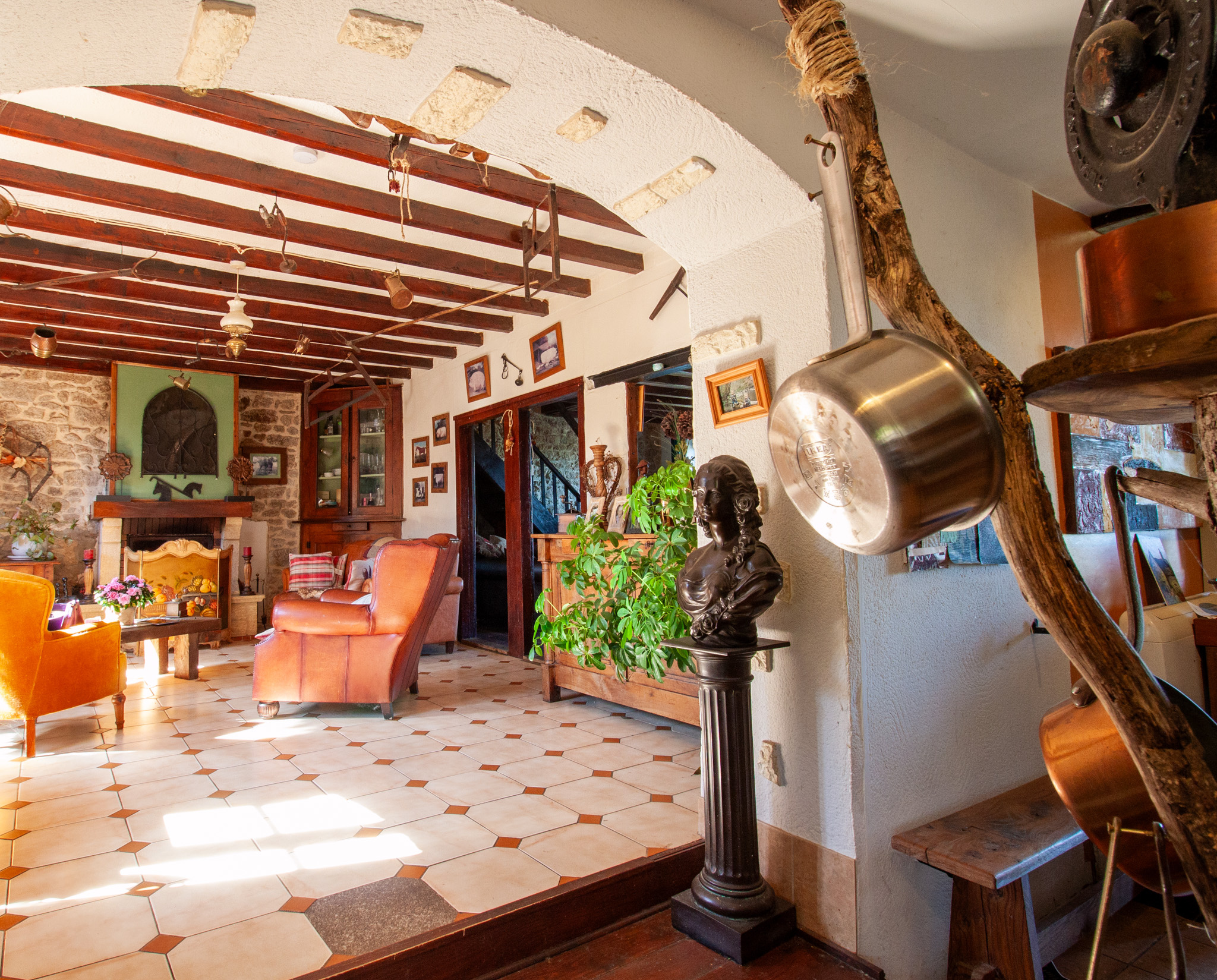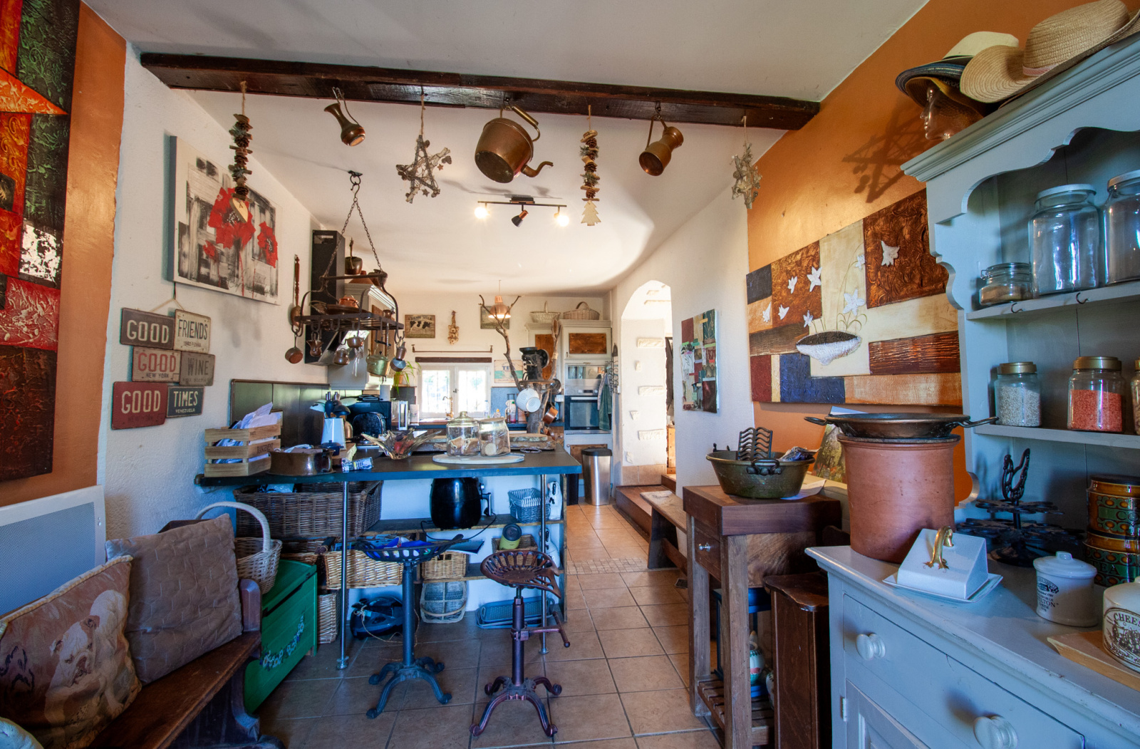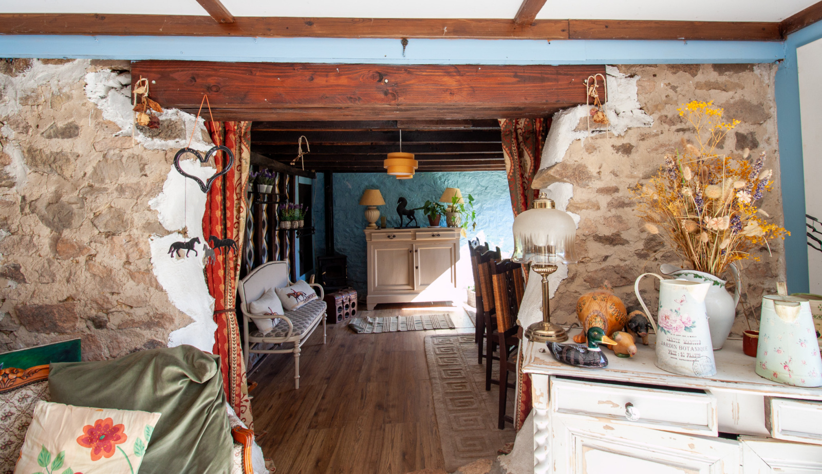 À l’intérieur, le charme opère immédiatement grâce à une ambiance chaleureuse et atypique :