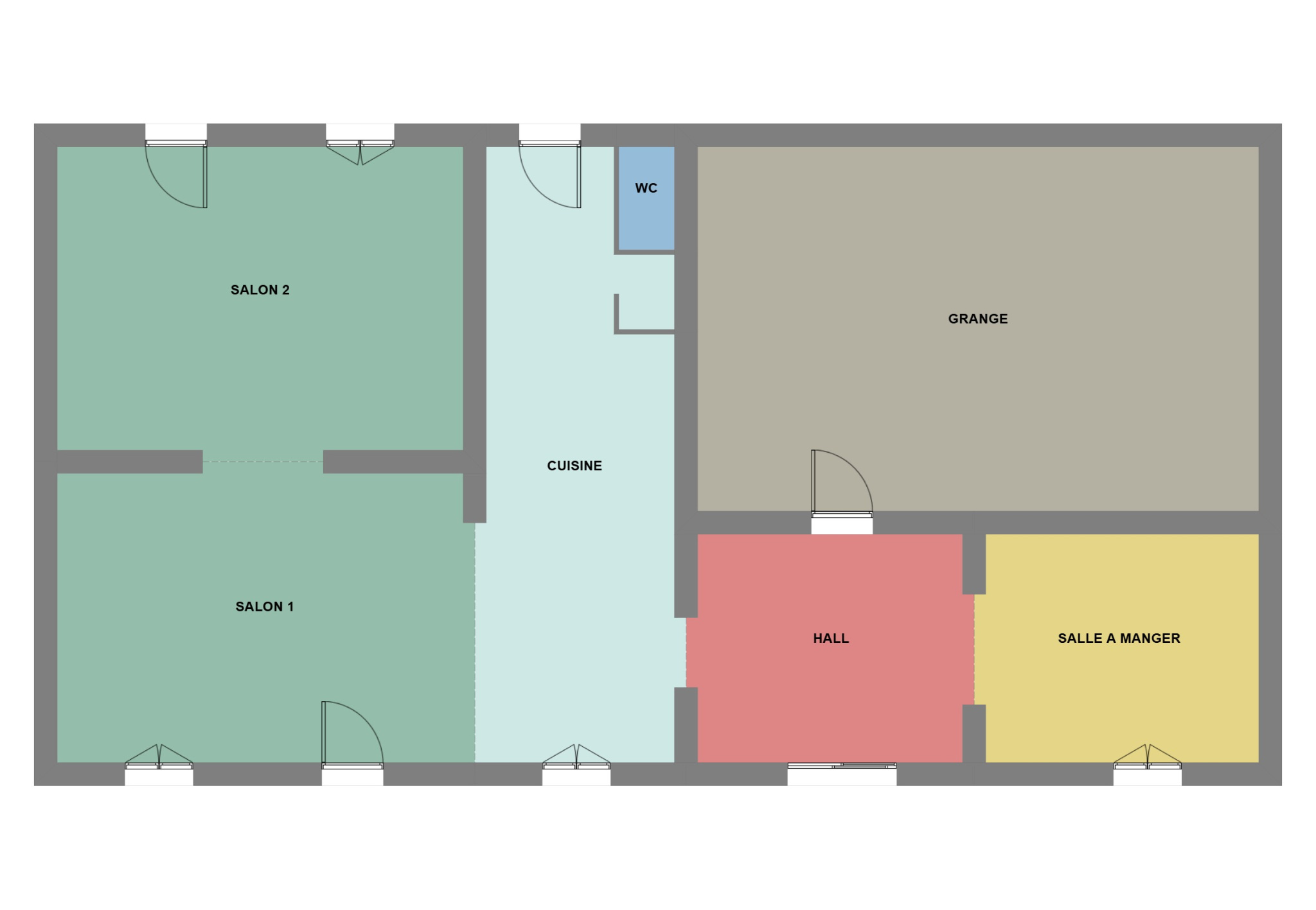 Rez-de-chaussée : un hall d’entrée pouvant servir de coin lecture ou d’espace détente, une salle à manger conviviale, une cuisine équipée avec petit bar ouvrant sur la terrasse, et un vaste double salon/séjour agrémenté d’un poêle à bois.